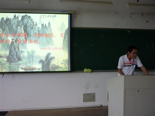 下午3点40分,讲座准时开始。张佳峰同学与大家一起分享了他的学习研究成果,他以精美的PPT形式向同学们介绍了诗、画、园林山水等内容,其中结合了他个人的心得与体会,为大家呈现了一场异彩纷呈的文化盛宴。同学们与他共同游于山水诗画中,妙趣横生,令人流连忘返。