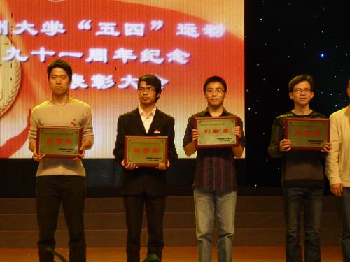 团委共荣获“2009年度温州市共青团工作、青年工作创新奖”、“ 温州大学2009年度五四红旗团委”、“温州大学2009年度校园文化建设工作优秀奖”三项荣誉称号。同时,我院08历本班团支部和07广本班团支部分别荣获“温州大学2009年度五四红旗团支部标兵”和“温州大学2009年度五四红旗团支部”荣誉称号。晚会现场,我院同学高喊“文韬武略,扬我人文”,又一次展现了我院优良的精神风貌。