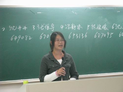 18:30,朗诵演讲决赛正式开始。此次决赛分为两个环节:自由演讲和即兴演讲,评委根据这两个环节为选手打分。选手们依次上台演讲。经过上周激烈的预赛角逐后,最终进入本次决赛的共有八位选手。在自由演讲环节中,选手们或激情澎湃,或睿智冷静,或深沉含蓄,展示了当代大学生的青春和热情。选手们通过声情并茂的朗诵演讲描绘了祖国60年的风雨兼程,我们聆听了她昔日的苦难,更见证了她今日的强大。作品中融注了选手们无限的爱国情思和热血希望。即兴演讲环节更是精彩,它考验了选手们的临场应变能力和语言表达能力。选手们的精彩表现博得了阵阵掌声。在热烈的气氛中,八位选手演讲结束,魏成春副书记为同学们作了简单点评,他谈及了朗诵演讲时应关注的几个方面,具体包括手势、感情、礼仪等,并解释了朗诵和演讲的不同点,使同学们获益匪浅。最终,08中本一班冯静安同学夺冠并获得“最佳人气奖”,沈晓娟和沈琴同学分别取得第二和第三名。