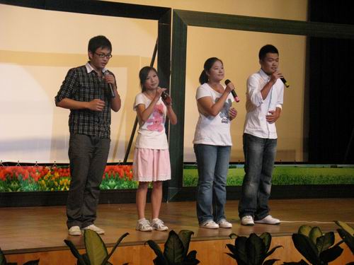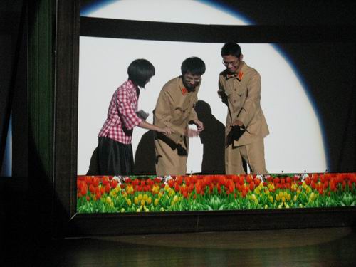 之后,在《春天的故事》的优美旋律伴随下,我们走进了改革开放的时代,演艺厅的气氛也随着激昂的歌声高涨起来。当舞台上再现了“小平您好”的场景时,全场气氛顿时达到了高潮。随后的诗朗诵《零八记忆》将观众带入了难忘的2008,铿锵的诗句勾勒出了我们中华民族在新世纪征程上意气风发、豪情万丈的伟大形象;《北京欢迎你》的优美旋律表达了我们海纳百川的博大情怀。舞台表演结束之后,观众们共同欣赏了影片《拉贝日记》,重温历史,让我们获益颇深。整场活动持续到21:30才圆满落幕。