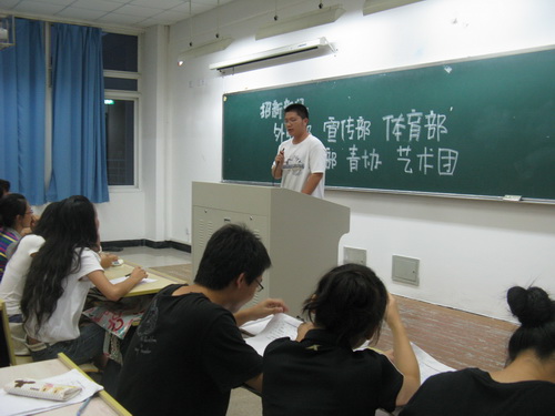 团委学生会在人文楼开展了第一轮招新活动。此次招新吸引了众多08新学子前来面试。初入校园的大一新生怀着"初生牛犊不怕虎"的精神,积极踊跃地展现自己的风采。虽然有些同学显得有点腼腆和紧张,但他们还是克服了胆怯,把自己好的一面展示给了大家。