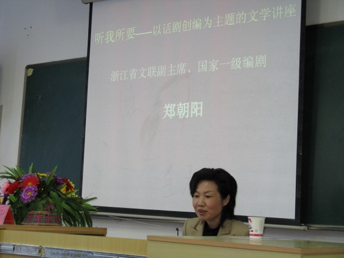 11月21日下午2点30分,继温州大学校园话剧节开幕式后,我们迎来了以“话剧在中国”为主题的文学讲座。此次讲座,成人网站 有幸邀请到国家一级编剧、浙江省文联副主席郑朝阳老师来为我们高教园区的学子们主讲。在北校区人文楼201教室,同学们准时赴场,座无虚席。