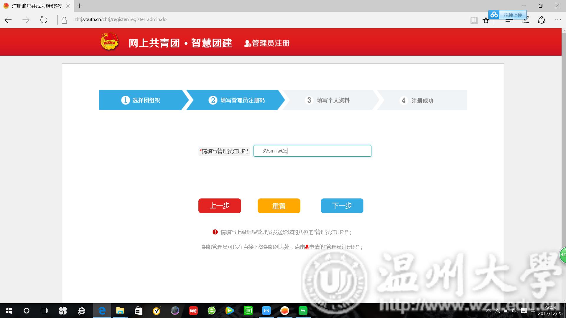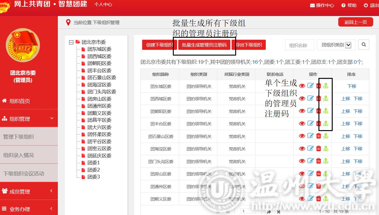 (4)将系统生成的直属下级团组织管理员注册码,分发给下级团组织,供下级团组织管理员注册使用。
