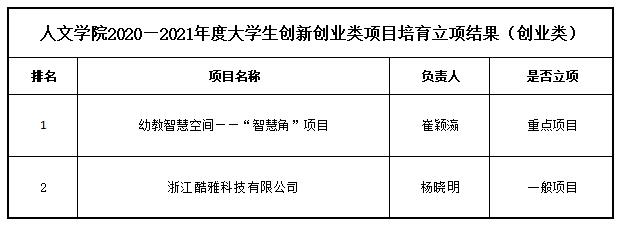 为进一步规范管理成人网站 大学生创新创业类培育项目,根据《关于印发<成人网站 大学生创新创业类培育项目管理办法>的通知 》[人文(2020)14号]文件要求,成人网站 组织专家对各申报项目进行评审,经公示,共立项重点项目5项,一般项目5项,现将名单予以公布。